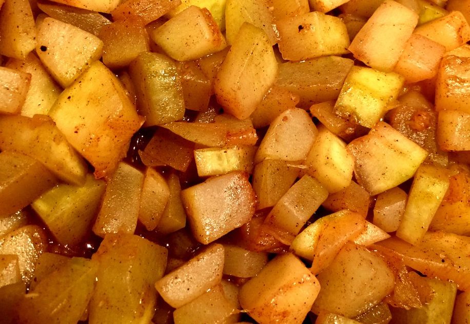 - 4-6 Honeycrisp or Granny Smith apples (peel, core, cut into ½ in pieces) (Should get 6 cups from roughly 2 pounds)