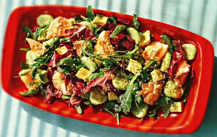 - Finely chop greens, add to the salad, sprinkle with lemon juice and zest.