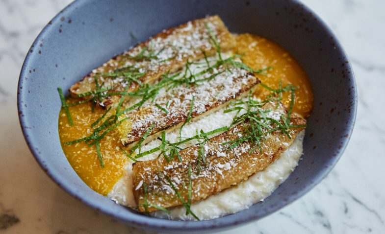 • Rice porridge with coconut milk with caramelized banana