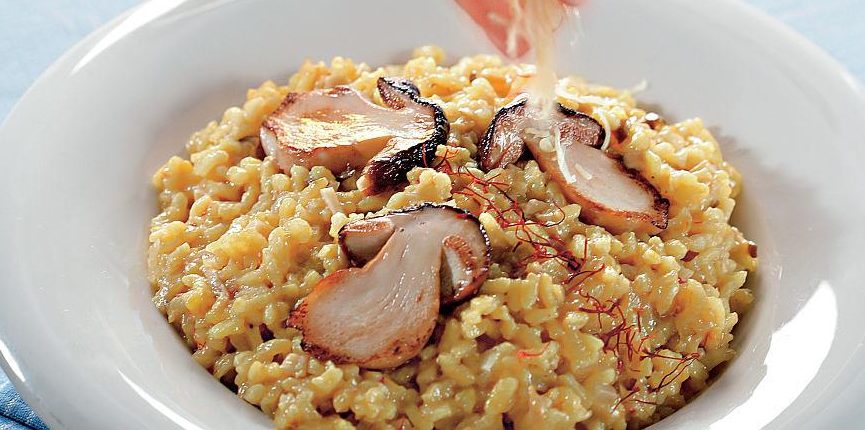 Classic risotto, a creamy tender rice dish with a wide variety of “fillings,” is served in Italy as an independent Prima, the main dish. But this Milanese risotto, with saffron, beef broth and butter can be served as both an independent dish and as a side dish to beef shank. A touch of saffron accompanied by flavorous mushrooms will sure to please all your family members and guests.