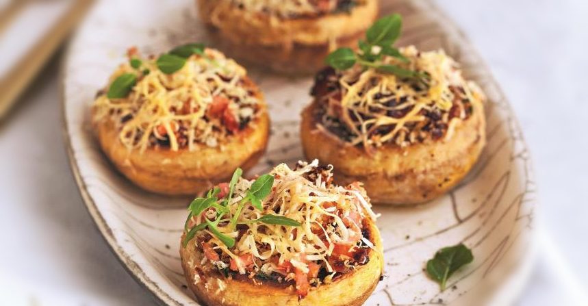 - Place mushrooms in the oven, preheated to 392°F (200°C). Bake for 5–7 minutes. Serve hot.